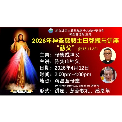 3:00PM - 4:00PM 神圣慈悲敬礼 (每逢周五 - 神圣慈悲组举办) : 堂区活动/教区组织活动